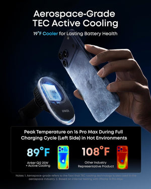 Aerospace-Grade TEC Active Cooling: With TEC active cooling, your phone stays below 89°F while charging, providing a safer and more efficient experience. Lower temperatures help protect your battery and reduce long-term wear. Actual performance may vary.