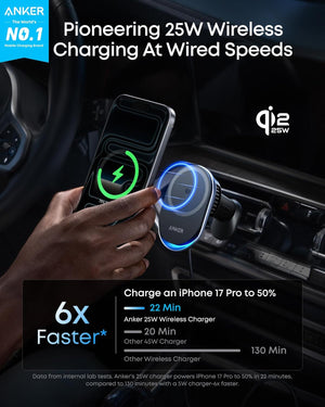 Anker Prime MagSafe Car Mount Charger, Qi2 25W Certified Wireless Car Charger with TEC Cooling, Strong Magnets, Air Vent Mount